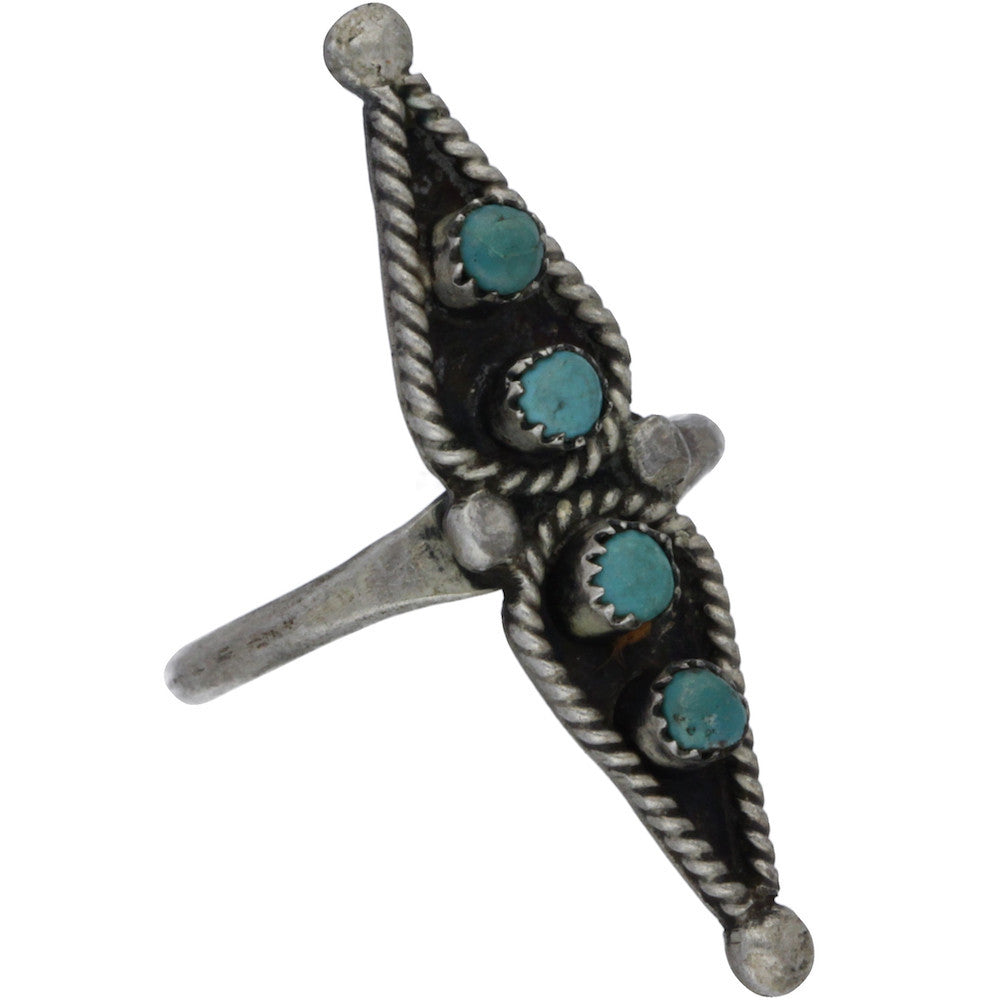 Zuni Handmade Turquoise Braided Tear Drop Ring - Size 9